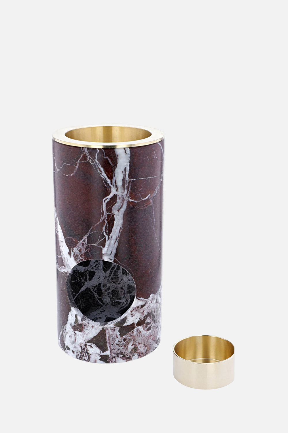 Elevate your home ritual with a hand-crafted Rosso Levanto oil burner in deep burgundy marble. Precision-carved from a single block of natural stone and finished with a brass bowl and tealight holder, it diffuses your favourite fragrance while adding a refined, sculptural accent to any space. Natural hematite creates the signature reddish tone and striking white veining—no two pieces are exactly alike.