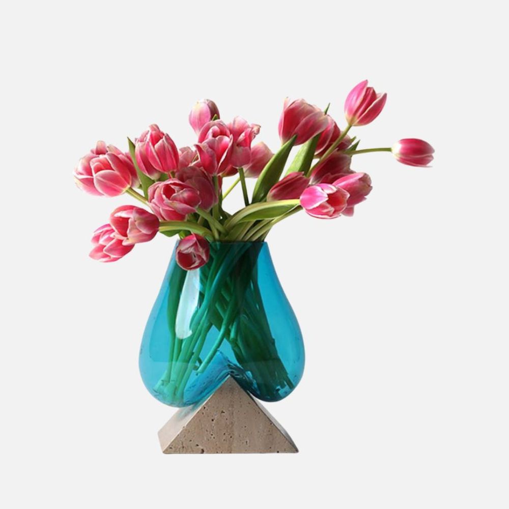 Travertine Marble Base with Melted Glass