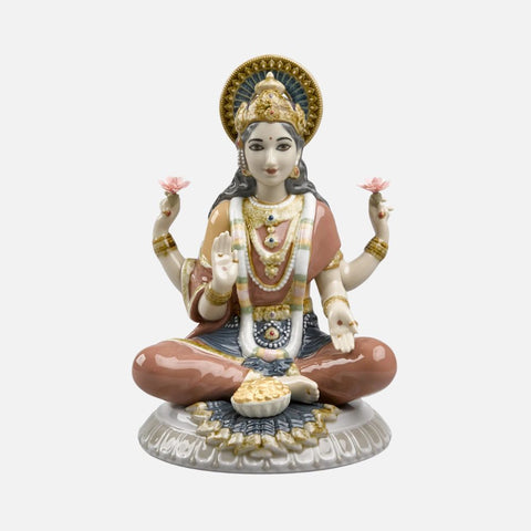 The magic of lithophany is born from the play of light with the translucent character of porcelain. By illuminating its interior, it projects warm lighting throughout the room and highlights the engraving that decorates it, producing surprising relief effects on its surface. This piece represents the goddess Lakshmi, symbol of purity, who transmits a deep spiritual symbolism with the serene beauty of her face. She is also the goddess of fortune and prosperity, one of the most beloved in Hindu homes.