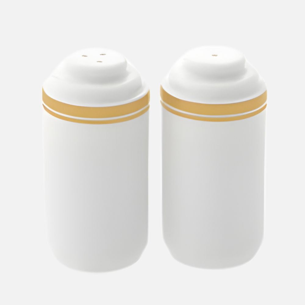 Le Verrier Gold Salt & Pepper Set is crafted from premium Fine Bone China porcelain. These sophisticated shakers boast a flawless ivory finish and are elegantly highlighted with a lustrous gold rim that reflects the night sky's brilliance. Perfect for adding a touch of elegance to your dining experience, this set combines functionality with refined design. Each shaker is designed for ease of use, ensuring that seasoning your meals is convenient and stylish. The luxurious gold accents provide a cohesive and polished look, making these shakers a beautiful addition to any table. Whether for everyday dining or special gatherings, the Le Verrier Gold Salt & Pepper Set elevates your table setting by blending luxury and practicality. Enhance your dining atmosphere with this exquisite pair, making every meal sophisticated.