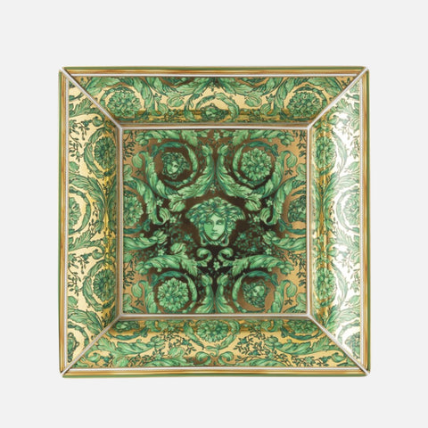 Introduce timeless elegance to your table with the Medusa Gala Dish, a refined masterpiece crafted in luxurious porcelain. Featuring the iconic Medusa motif framed in lavish gold baroque detailing, this square 22 cm dish fuses classical inspiration with contemporary sophistication.