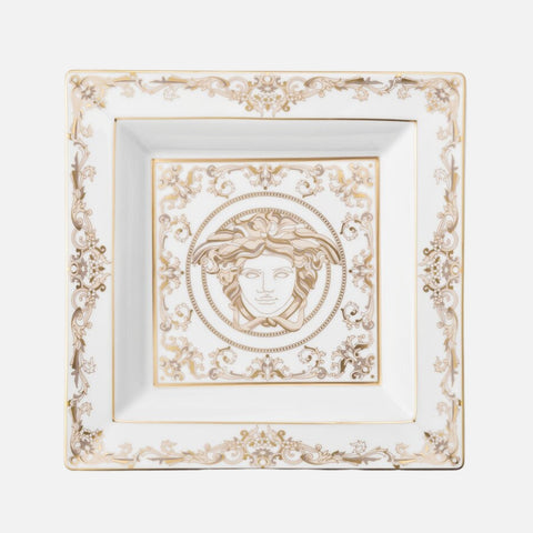 Elevate your tabletop with the exquisite Medusa Garland Dish in a stunning green and gold palette. Crafted from fine porcelain, this 18 cm square dish is adorned with rich baroque-style detailing and the legendary Medusa head at its center—an unmistakable symbol of luxury, strength, and bold design.