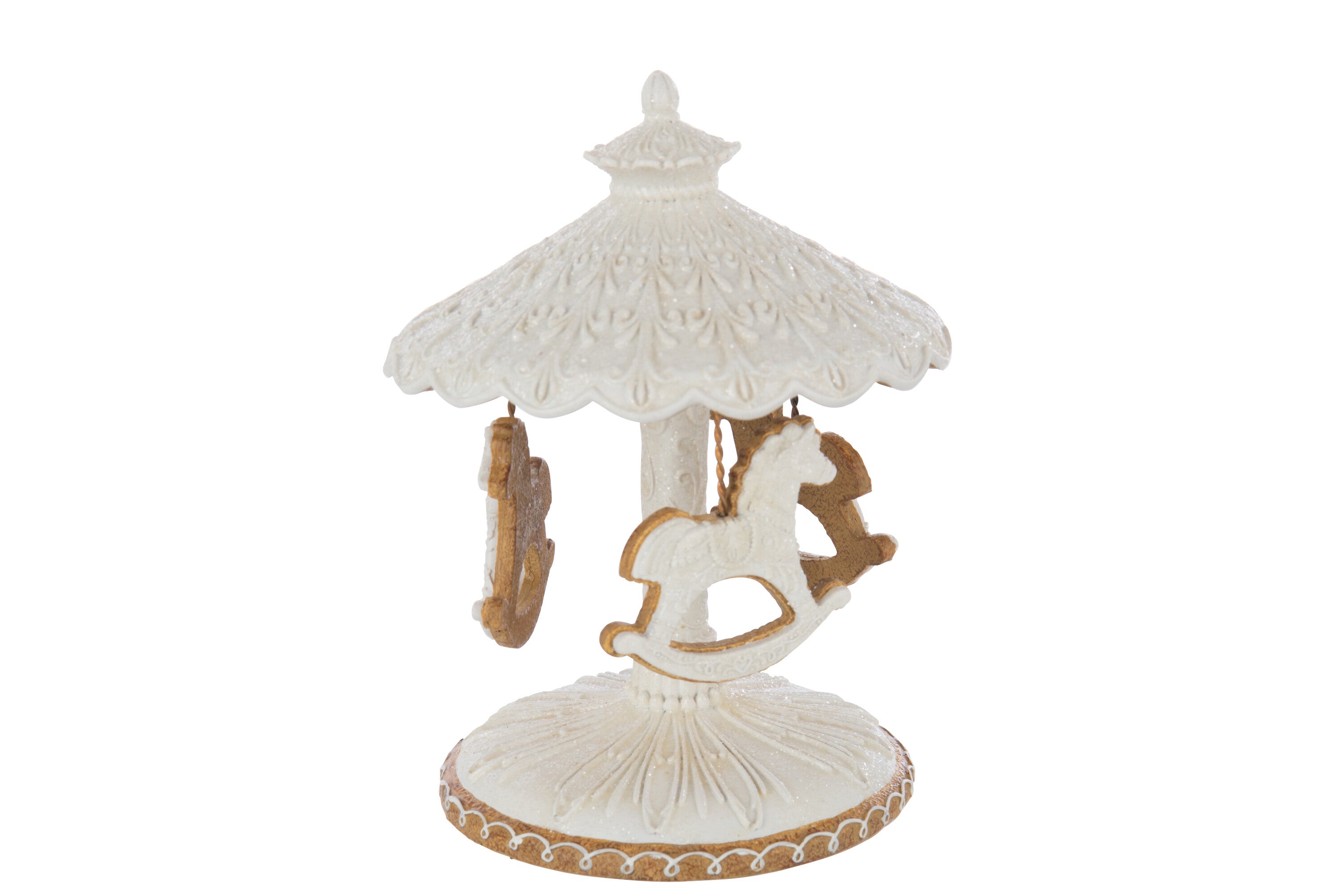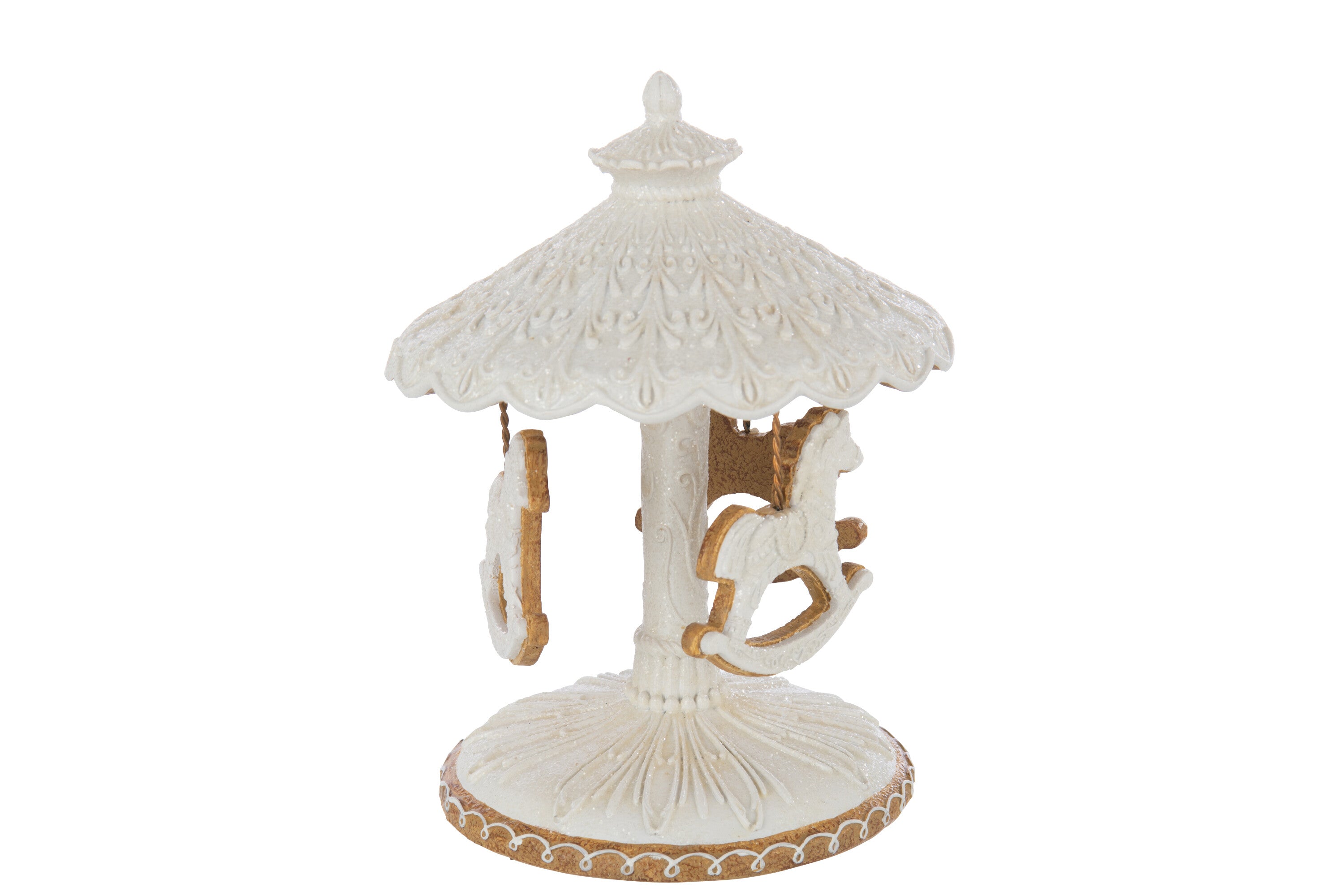 Bring home the festive charm of the Carousel Gingerbread Figurine – Polyresin Beige/White and make your holiday décor unforgettable.