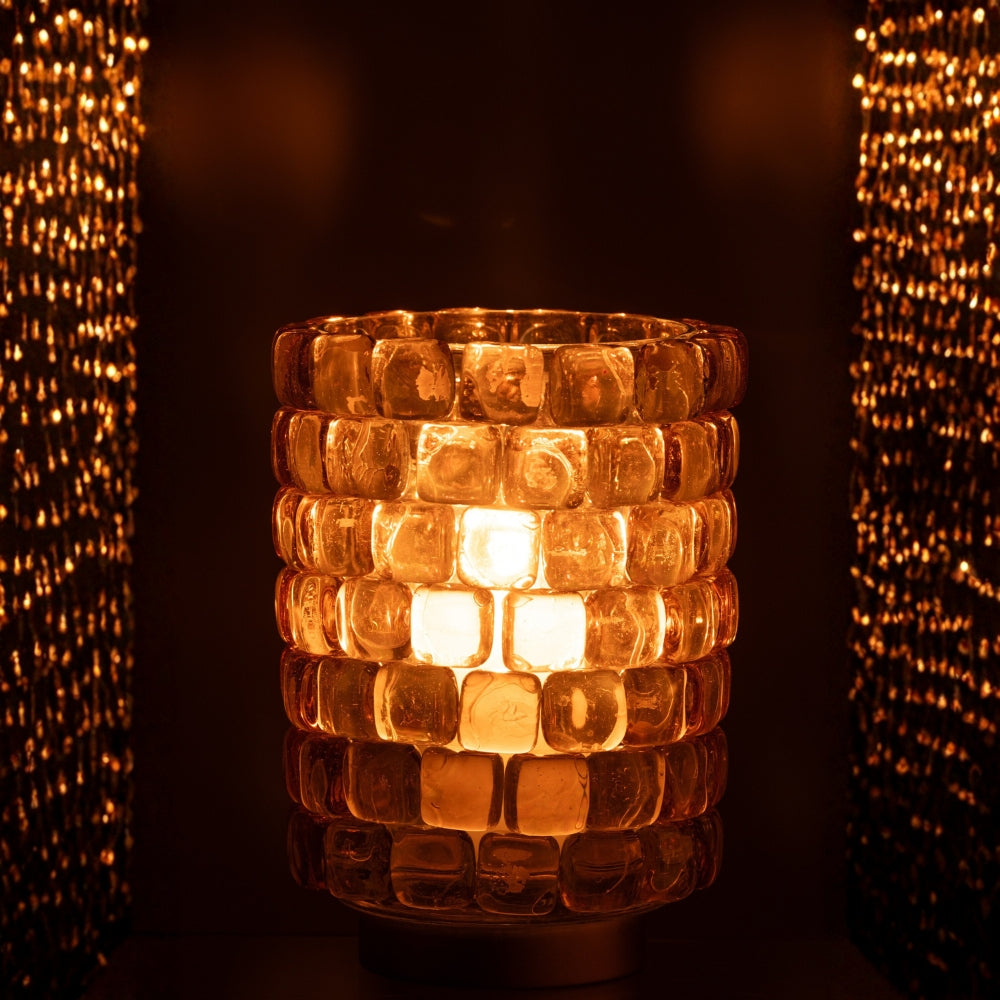 Add a touch of warm luxury to your décor with the Hurricane Square Mosaic Glass Candle Holder—a perfect blend of craftsmanship and contemporary style.