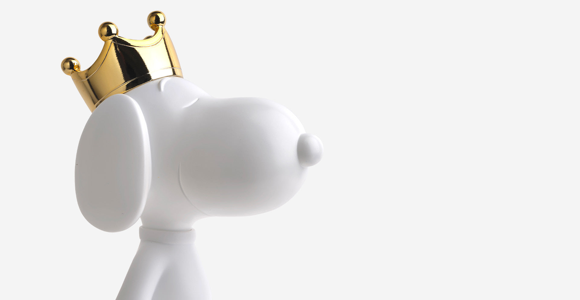 This 31 cm resin piece features Snoopy wearing a delicate crown, finished in stunning white and gold tones that combine sophistication with playful artistry. Perfect for collectors and design enthusiasts, it adds a joyful yet refined touch to any space.