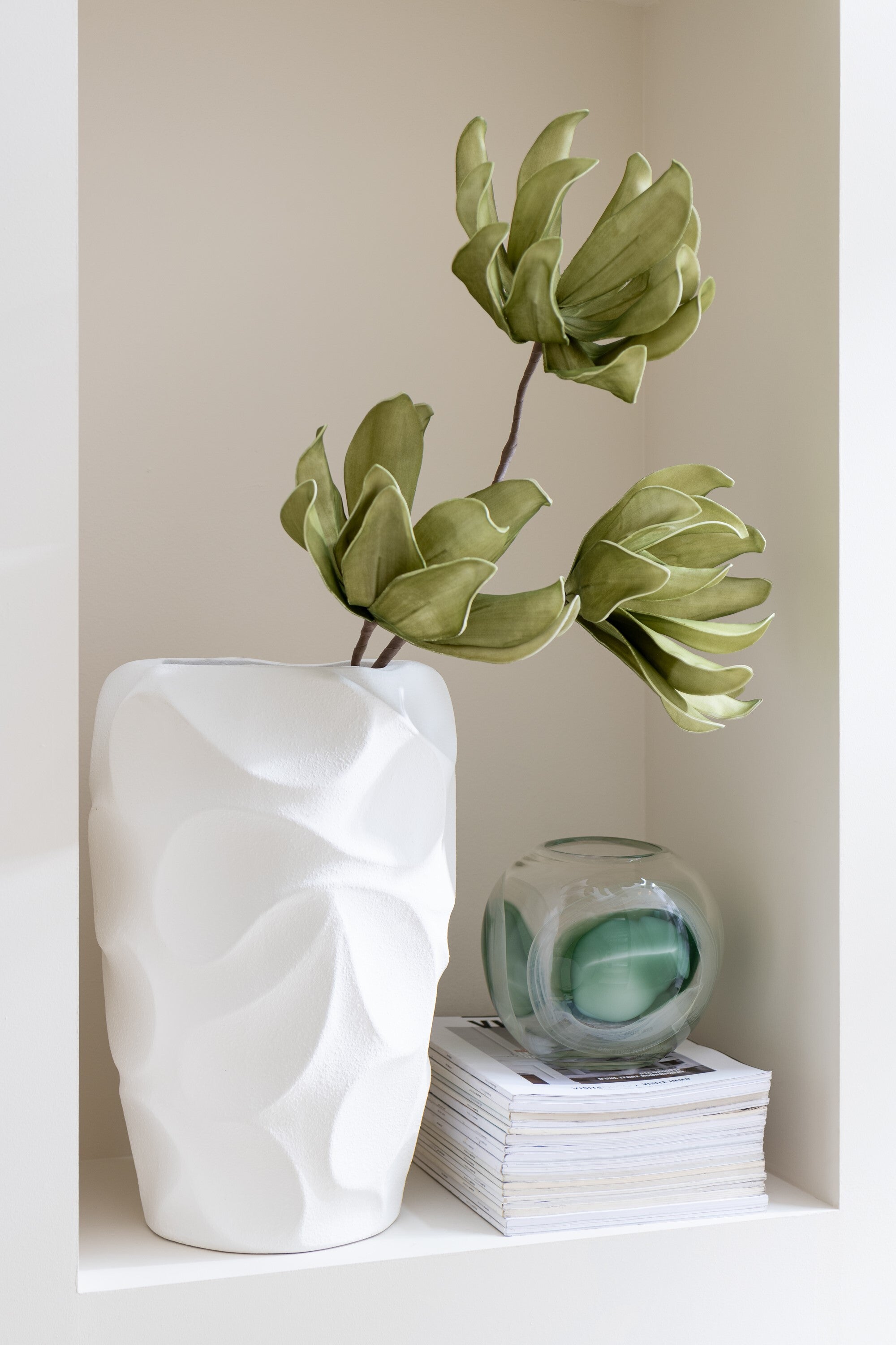 Made from high-quality ceramic and earthenware, this large decorative vase blends modern minimalism with artisanal charm. Its crisp white tone complements any décor palette, adding sophistication and texture to your home. Whether styled with dried florals, pampas, branches, or displayed as a standalone art piece, it enhances the beauty of any room.