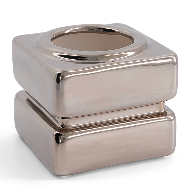 A reflective and sculptural ceramic pot in a brilliant platinum glaze. The Donna pot, made in Italy, embodies both luxury and modernity — ideal as a vase, decorative piece, or stylish table centerpiece.