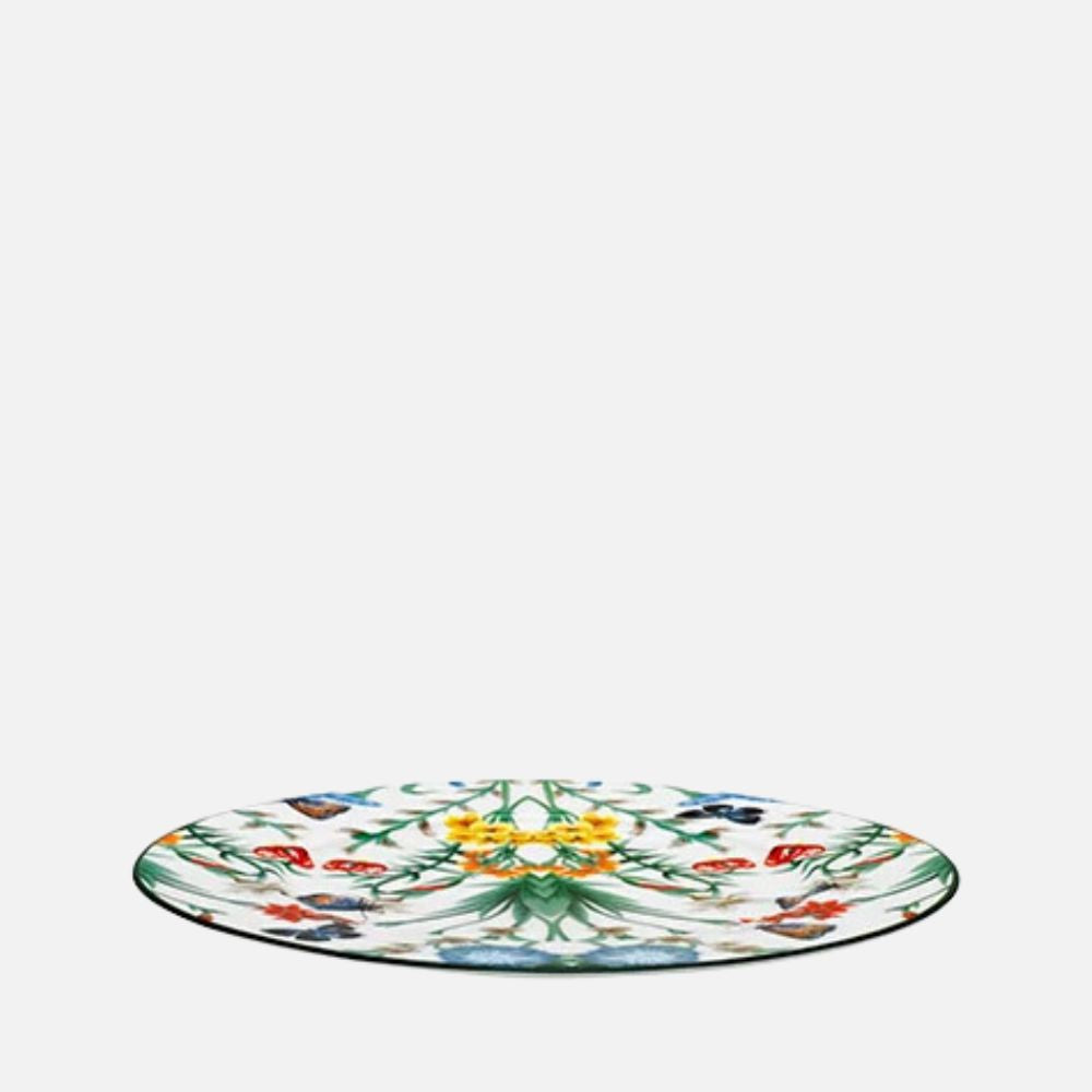 The Jardin de Papillons 22cm salad/dessert plate in a crisp white base is a versatile addition to any table setting, offering a perfect balance of elegance and functionality. The clean white backdrop highlights the intricate butterfly design, making it an exquisite choice for a variety of dining experiences. Whether you're presenting a vibrant salad, a decadent dessert, or a light appetizer, this plate enhances the visual appeal of your dishes. Its size and design make it suitable for informal and sophisticated meals. Made from high-quality Prime Porcelain, the plate provides durability and a refined look, ensuring it maintains its charm and utility through countless dining occasions. The Jardin de Papillons salad/dessert plate, combines classic style with practical use, elevating your table with every meal served.