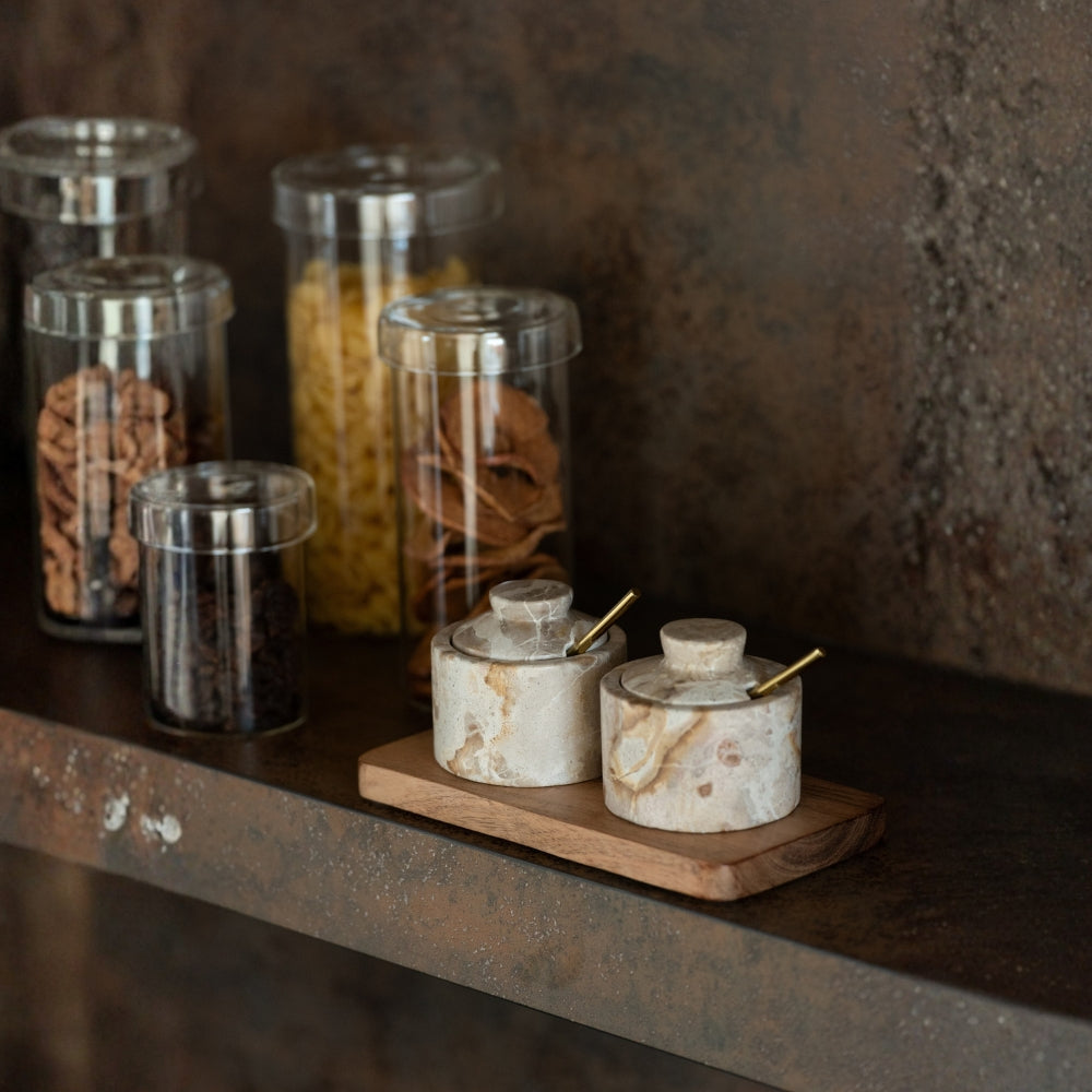 Enhance your dining experience with the Marble Condiment Set, combining elegance and practicality for every meal.