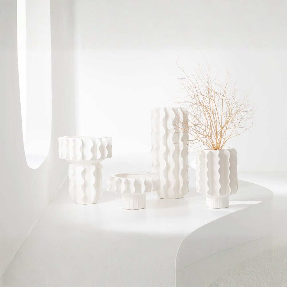 Modern elegance meets architectural detail in the Helix Cylinder White Ceramic Vase — a perfect fusion of style and function for any contemporary or minimalist space.